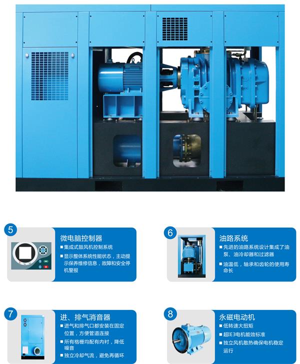 高速永磁电机亦可通过变频器调节转速,调速范围可达30%-110%,调节范围更宽,经济性能更 好。