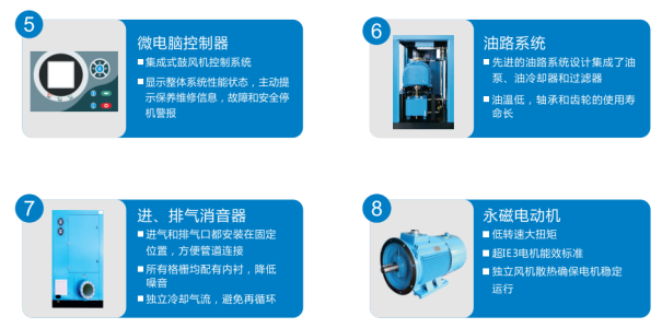 2、空气过滤器:高品质的进气过滤器提供高过滤等级,工艺可靠性高,能源效率高。使用寿命长,延长保养间隔时间。